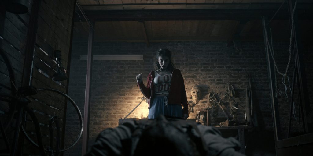 Элисон получилась весьма схематичной, а вот антагонист и всё, что связано с его миром, выглядит в работе Карлоса Гоития очень любопытно. В образе маньяка угадывается как гигантский и молчаливый Джейсон Вурхиз с любовью к маме, так и Кожаное Лицо со страстью мастерить себе различные маски. Однако у похитителя, в отличие от его жертвы, выстраивается предыстория, скрытая скорее в кратких репликах его умирающей матушки и деталях антуража зловещего дома, например, в фотографиях, демонстрируемых в одной из финальных сцен. Благодаря поиску таких нюансов и отсылок фигура маньяка обрастает мотивацией, увеличивающей интерес к персонажу, чья изначальная функция в сюжете – пугать протагониста и зрителя.