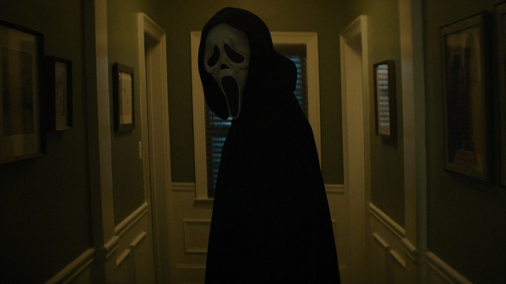 К счастью, блеклость персонажей и бедность подтекстов седьмая часть уверенно компенсирует смачными убийствами и бешеной динамикой. Жертв не так много, как в пятой или шестой частях, но качество смертей важнее их количества. Особенно удалась сцена в театре: маньяк уверенными движениями выпускает кишки беспомощной фее, которая запуталась в тросах — ни дать ни взять, муха в смертоносной паутине. Убийство, кстати, отсылает к заключительной разборке из второй части (вы же помните, что Сидни играла в студенческом театре?). Но это лишь начало кровавого марафона. Дальше Призрачное Лицо атакует сразу нескольких людей в одной большой локации, а тем, кто уцелеет, придётся бежать по пустынным улицам, ища убежища в запертой кофейне. Будет и зрелищная игра в прятки, когда маньяк ищет укрывшихся Сидни с Татум (смотрится как невольный оммаж «Людям под лестницей»), протыкая стены острейшим ножом. Уильямсон вообще грамотно интегрировал в некоторые убийства отсылки к прошлым частям (а одно из нападений, кажется, рассчитано на фанатов Mortal Kombat 1, воспроизводя один из тамошних спецприемов Призрачного Лица).